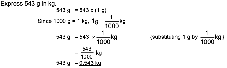 | Express 543 g in kg. |