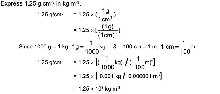 | Express 1.25 g cm–3 in kg m–3. |