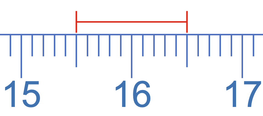 A stated value of 1.6 m tells us that the value is between 1.5 m and 1.7 m. However it should also tell us that the value is closer to 1.6 than either 1.5 or 1.7 is. Hence the exact height must be between 1.55 m and 1.65 m. |