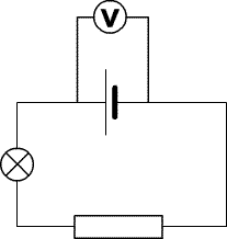 Voltmeter measuring the e.m.f. of the battery.