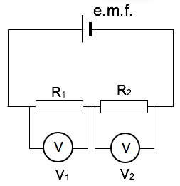 The e.m.f. in a series circuit is divided among components according to the ratio of their resistances.