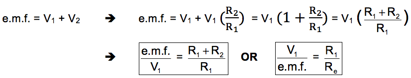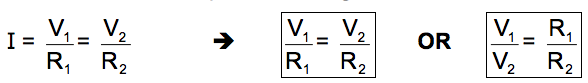 As the current flowing through the resistors is identical we can deduce the following relationship: