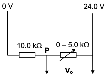 (b) determine the potential at point P of the circuit when the variable resistor is set at 2.0 kΩ. |