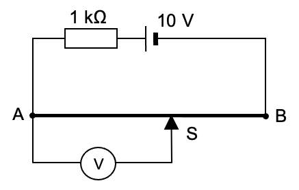 (a) Use the potential divider concept to describe and explain the changes in the voltmeter reading as the jockey S is slid along the length of resistance wire from A towards B.