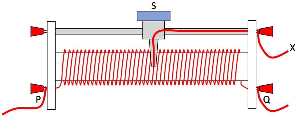What happens to the potential difference between X and Y as S moves from P to Q? |