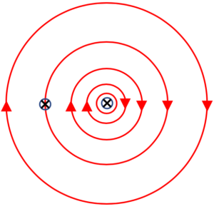 Note: These two wires have currents flowing in the same direction but this concept works for all cases.