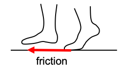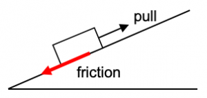 Friction should be represented like this – with the force acting along where the surfaces are touching.