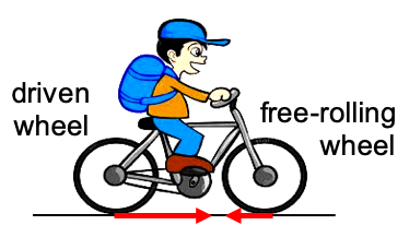 Consider the case of a bicycle peddling and accelerating as it moves to the right: