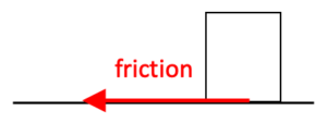 As friction here is shown acting towards the left the object is either moving to the right or has a rightward force applied to it which is trying to make it move towards the right.