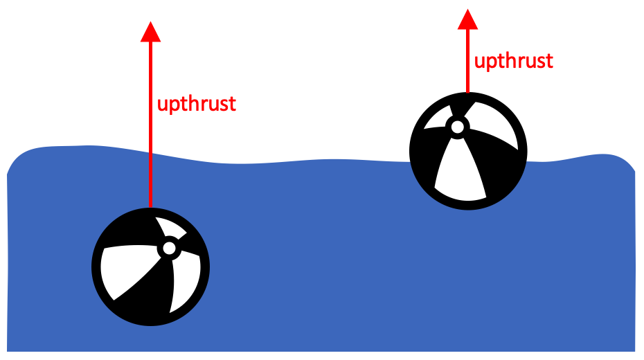 - Upthrust on a body due to a gas (e.g. air) is usually neglected because it is usually small compared to the weight of the body. However, it cannot be ignored for objects such as hot air balloons or party helium balloons which float due to their upthrust being larger than their weight.