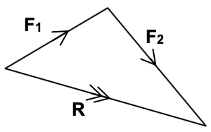 | Adding 2 forces acting on a body to give a resultant force R on the body. | Adding 3 forces acting on a body in equilibrium to give zero resultant force. |