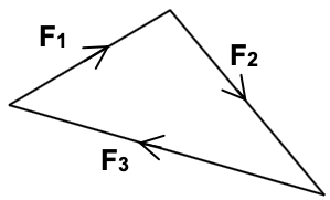 | (a) Draw any force first from a point A (b) Then draw the 2nd force followed by the 3rd force ending at A again. |