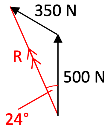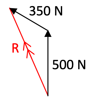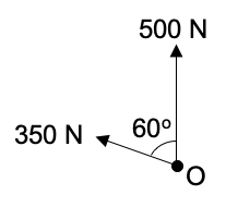 | (a) Sketch the vector diagram. (b) Calculate using trigonometry formulae or draw scale diagram. (c) Describe the direction of the force. |