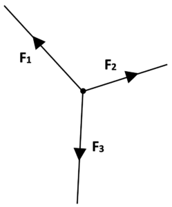 | Three forces F1, F2 and F3 act on a point to keep it in equilibrium as shown below.