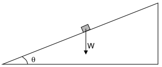 | A box of weight W rests on a slope at an angle θ to the horizontal.