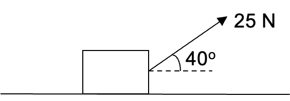 | A force of 25 N acts on a 2.0 kg box that is at rest on a smooth horizontal surface as shown in the diagram.