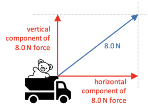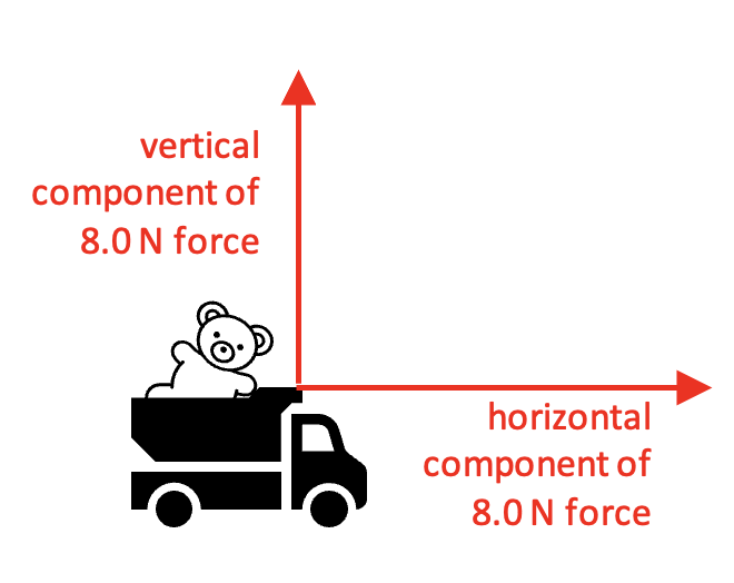 Imagine a boy pulling his toy truck with an 8.0 N force pulling at an angle as shown: