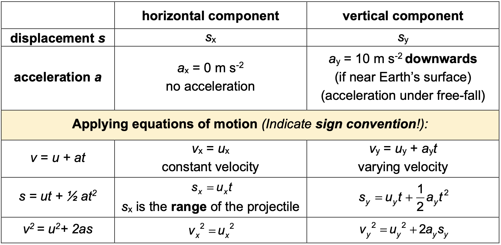 - Analyse the motion in two perpendicular directions independently using suitable symbols with suitable subscripts, e.g. x and y.