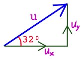 - tanθ = uy/uX (Ensure calculator in degree mode)