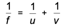 links the focal length, ƒ, with the object distance, u, and the image distance, v.