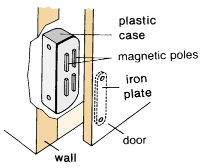 17.6 – Applications of Magnets Appliances With Permanent Magnets magnetic door catch fridge door Appliances With Electromagnets moving coil meters such as ammeter or voltmeter relay switch door bell / fire alarm loudspeaker << Back Magnetism