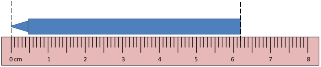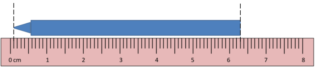 length of crayon = 6.3 – (0.1) = 6.2 cm