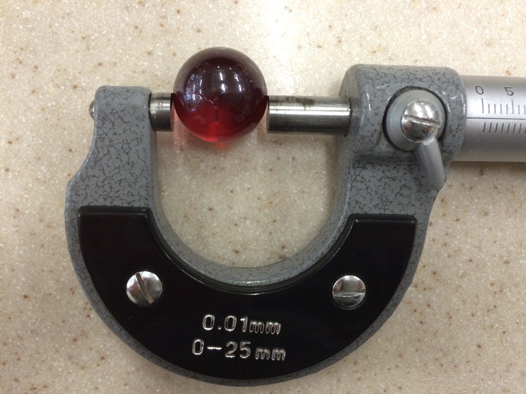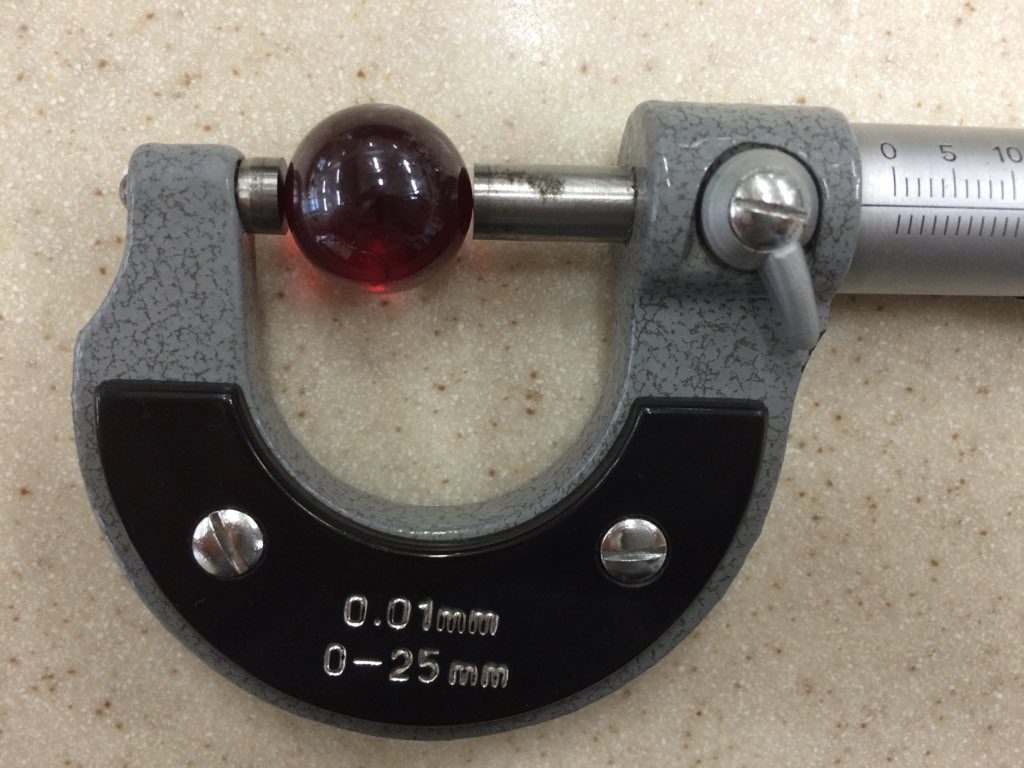 The shows the micrometer being correctly used to measure the diameter of a marble.