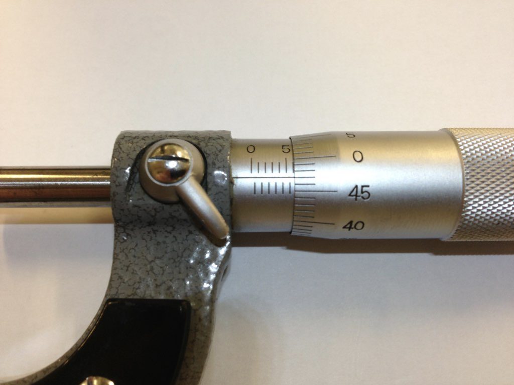 This shows the micrometer being wrongly used. We can not be sure this measurement is actually across the diameter.