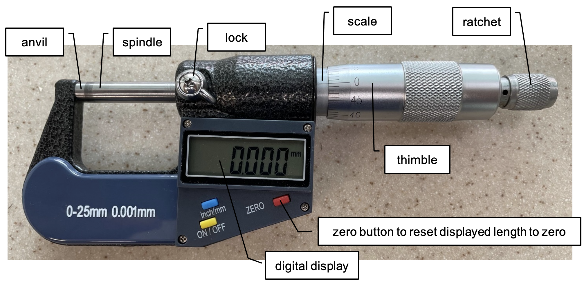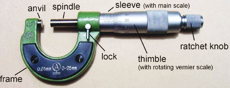 To measure even smaller lengths, a micrometer is used as it has an even higher precision i.e. 0.001 cm (0.01 mm) or better. However, its range is usually only 2 cm or 3 cm.