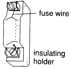 Consists of a glass tube capped by two metal caps with a piece of fuse wire connected between them.