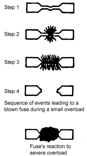 Fuses behave differently depending on the severity of the overloading as shown below:
