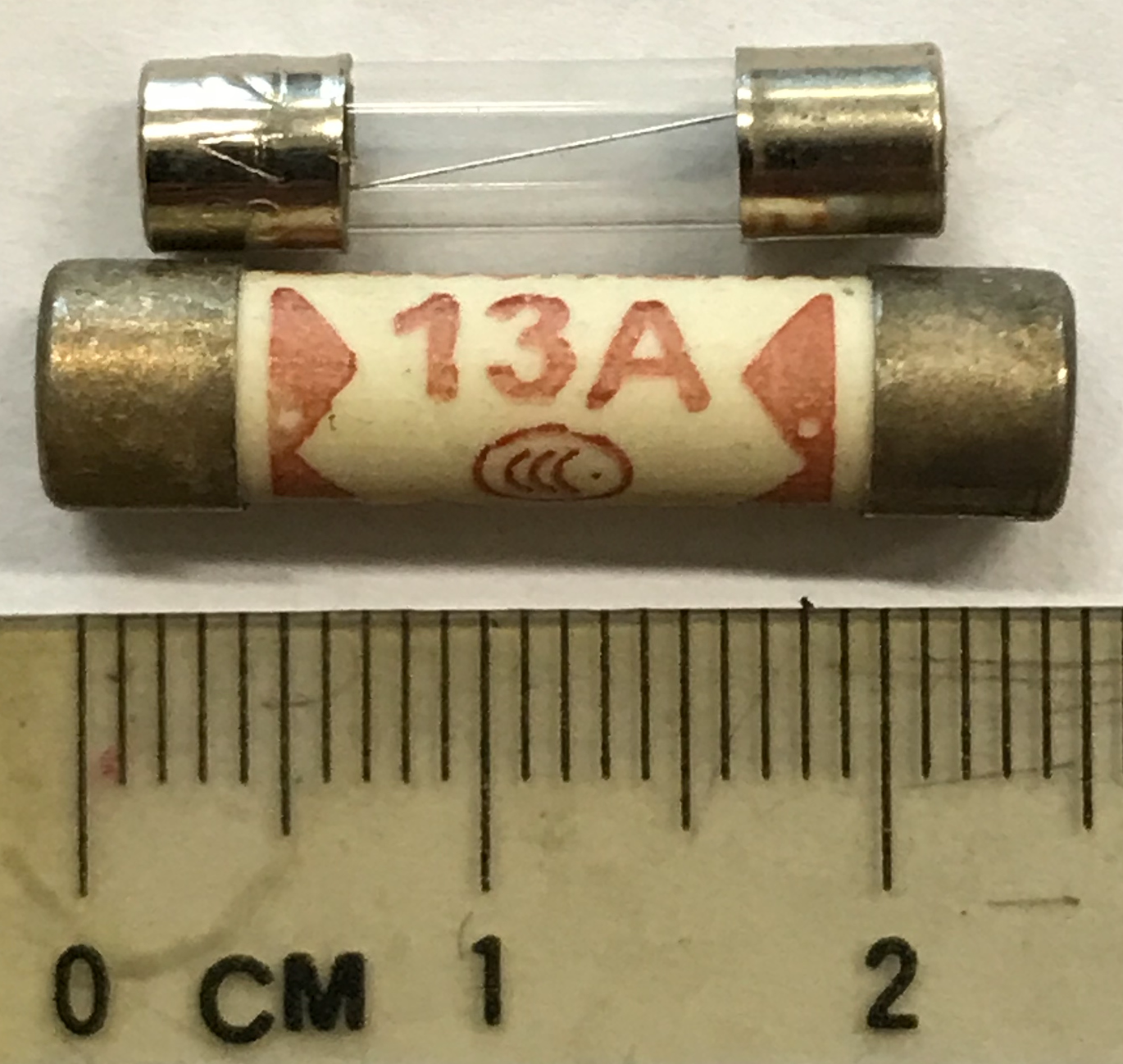 showing the scale of typical cartridge fuses
