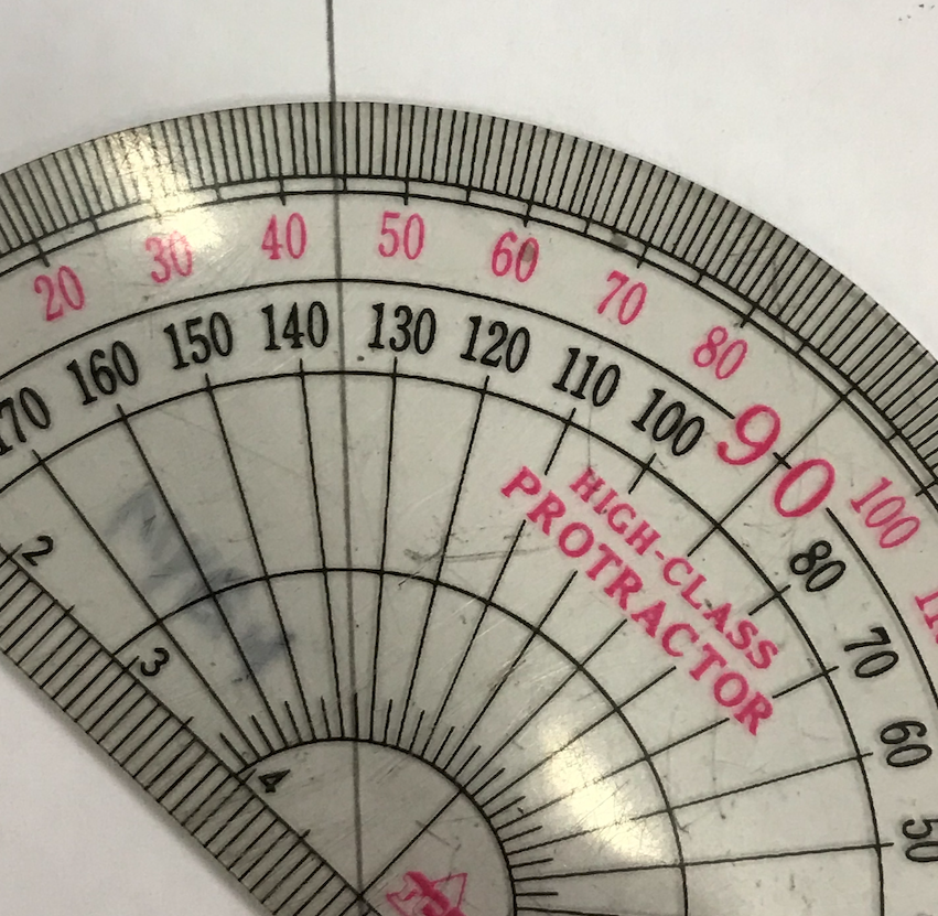 Note the centre point of the protractor often does not lie along the base of the protractor. Notice how such a protractor can still be used to measure the angle of inclination of this plank.