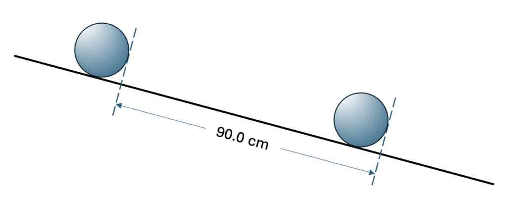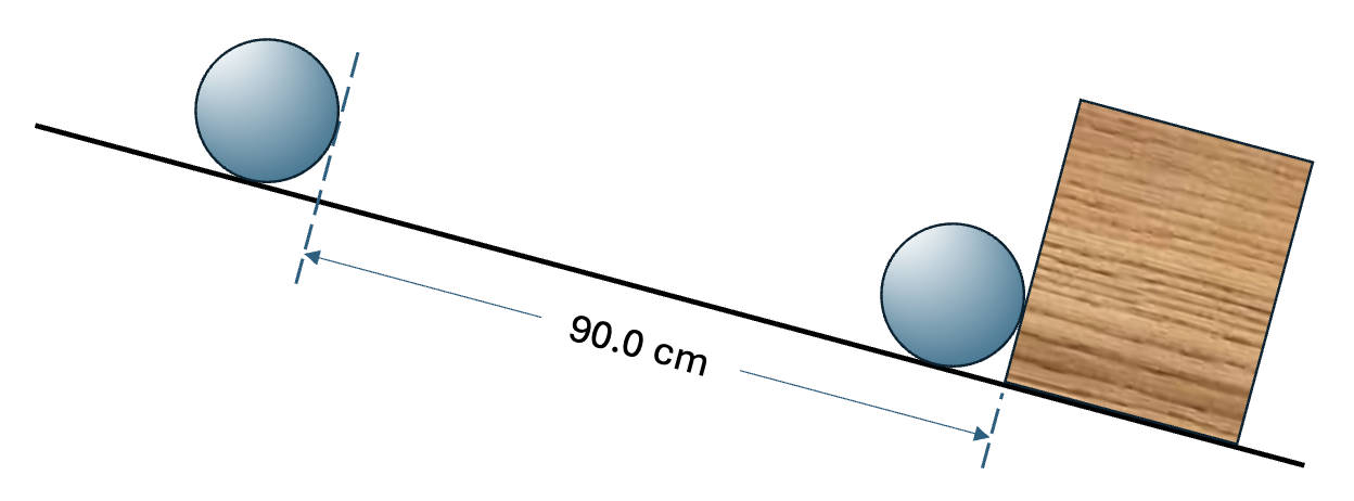 In practice, a block placed at the end of the track allows for an even clearer indicator as to when the marble has completed travelling 90.0 cm. We can use the sight of the marble hitting the block and/or sound of the collision as additional guides as to when to accurately stop the stopwatch.