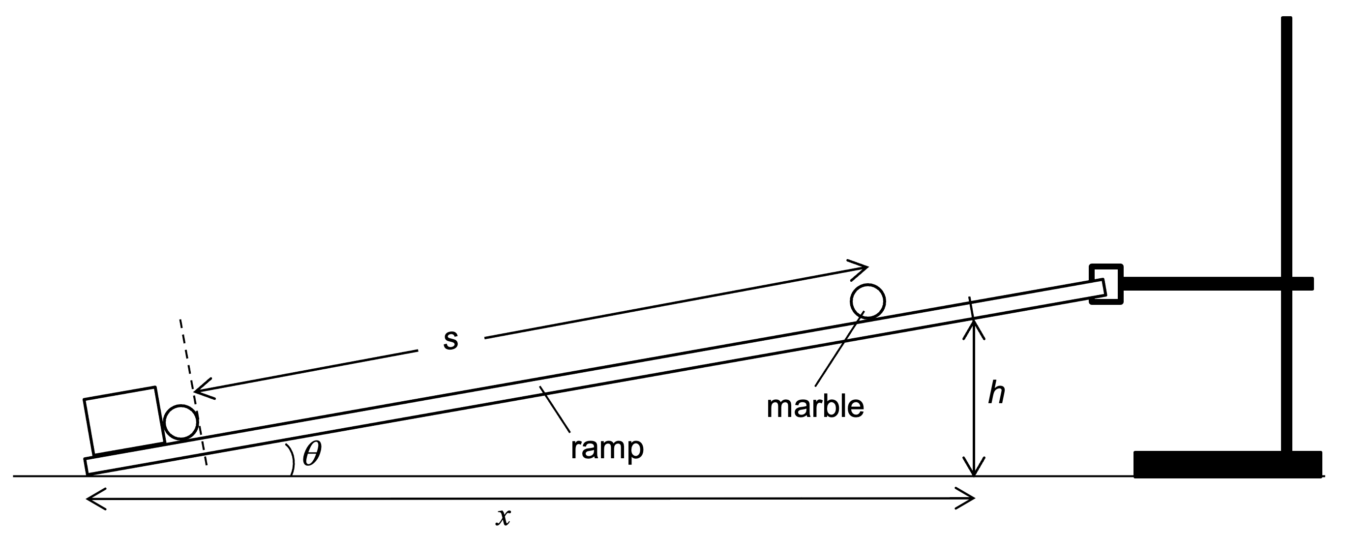 Note that although the centre point of the protractor does not lie along the base of the protractor it can still be used to measure the angle of inclination of this ramp.