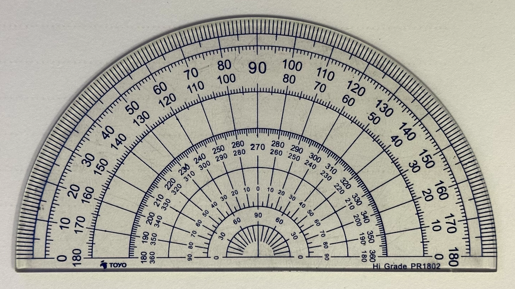Example of a protractor in which the centre is along the base.
