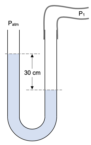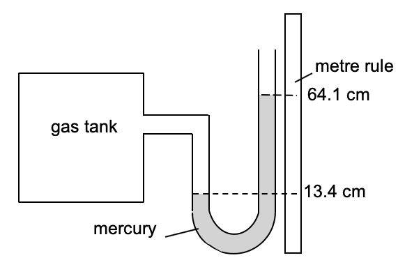 | The diagram below shows a manometer that is used to measure the pressure in a gas tank.