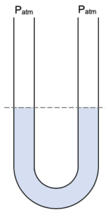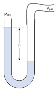 A rubber tube is connected to the right-hand tube of the manometer and connected to a gas of a pressure we are trying to measure.