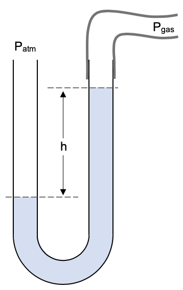 Note the manometer does not tell us the absolute pressure. It tells us the difference in pressures between the two sides of the manometer. The difference in the gas pressure and the atmospheric pressure is sometimes referred to as the excess pressure.