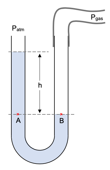 Pressure at point B is just the pressure of the gas we are measuring Pgas.