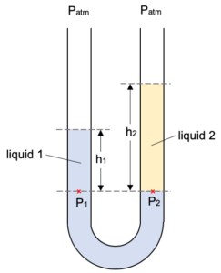 A manometer is a U-tube partially filled with a liquid.