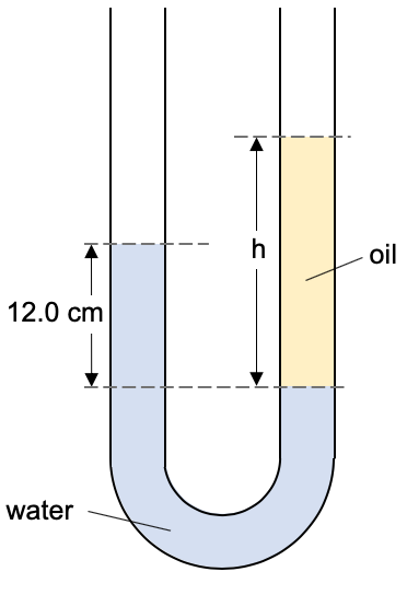 Note we are using pascals here as the unit (i.e. not using cm Hg) because there are two liquids – thus it is not possible to express everything in terms of the height of liquid.