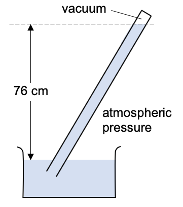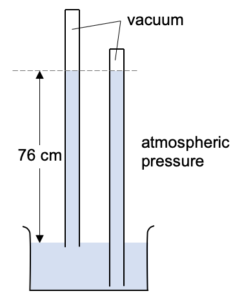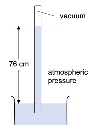 Typical atmospheric pressure will push mercury 76 cm up the tube.