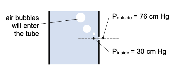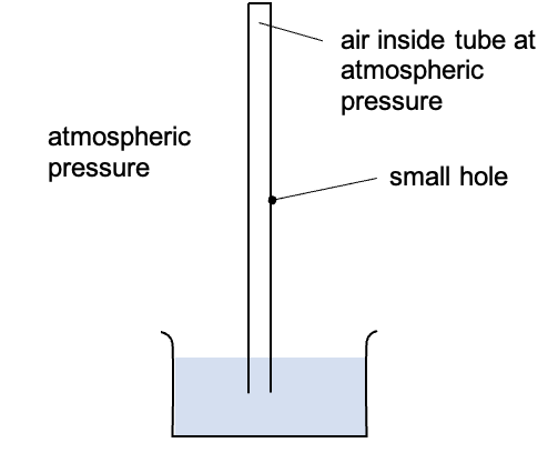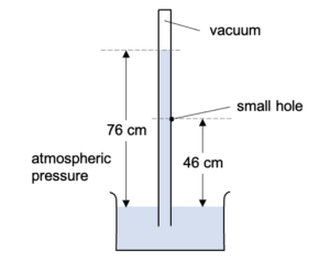 | Explain what would happen if a small hole is made in a barometer tube 46 cm from the mercury reservoir level. |
