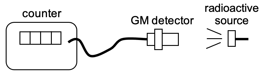 | A GM detector is placed near a radioactive source as shown below.