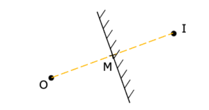 In the following diagram, the location of the object O and its image I are known. Use this information to accurately construct and label the location of the mirror M.
