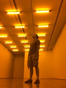 Notice that under these monochromatic sodium lights it is impossible to identify the colours of my shoes & teeshirt.