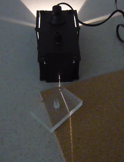 The photo above shows the ray of light emerging from the rectangular plastic prism.