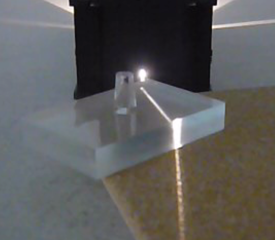 The photo above shows how a light ray bends as it travels through a rectangular plastic prism.
