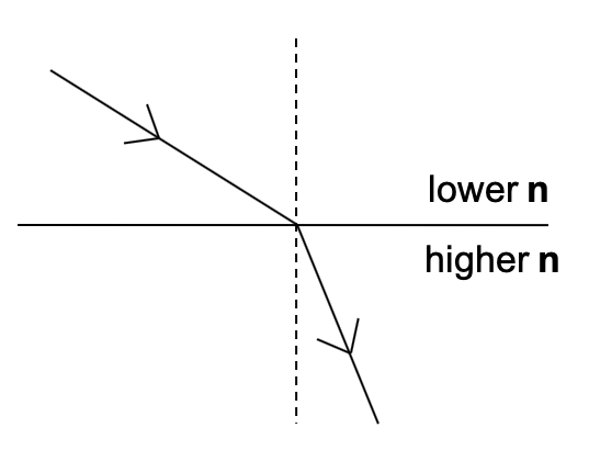 light travelling into a media of higher optical density